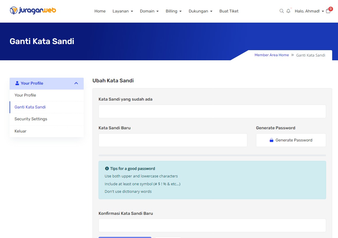 Kami menyarankan agar penggantian password dilakukan secara berkala demi keamanan akun Anda.